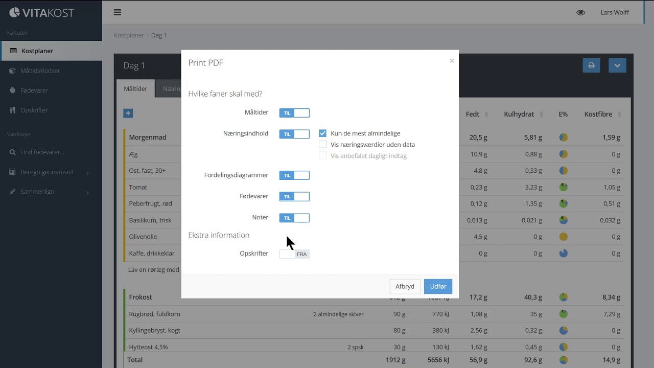 ▶️ Udskriv/print kostplan
